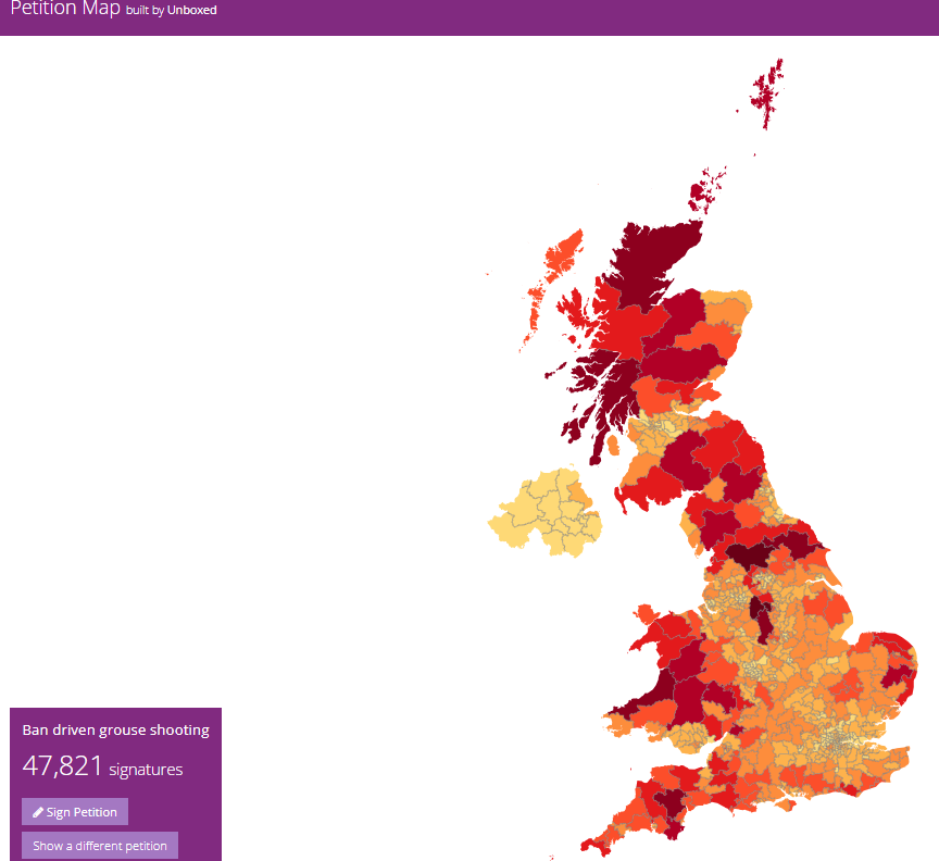 Our Ban Driven Grouse Shooting petition is flying with over 47,000 signatures.