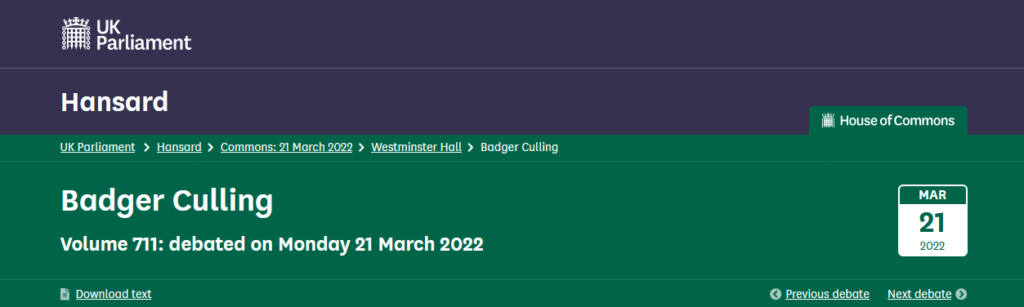 In the run up to the debate many Wild Justice supporters drew the debate to the attention of their MPs (thank you for doing that), Mark Avery met, virtually, Nick Fletcher MP from the Petitions Committee to brief him on the petition and our thoughts, and we and other organisations, particularly the Badger Trust (many thanks!) briefed MPs on the issues.