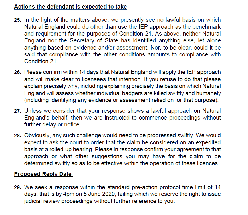 Extracts from our Pre Action Protocol letter to Natural England.