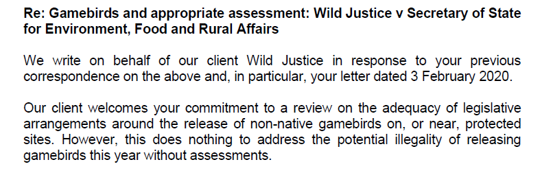 Gamebird releases – update 6th February 2020 1:34 pm Here are the most pertinent parts of a letter sent to DEFRA yesterday; and then; We trust that is clear…