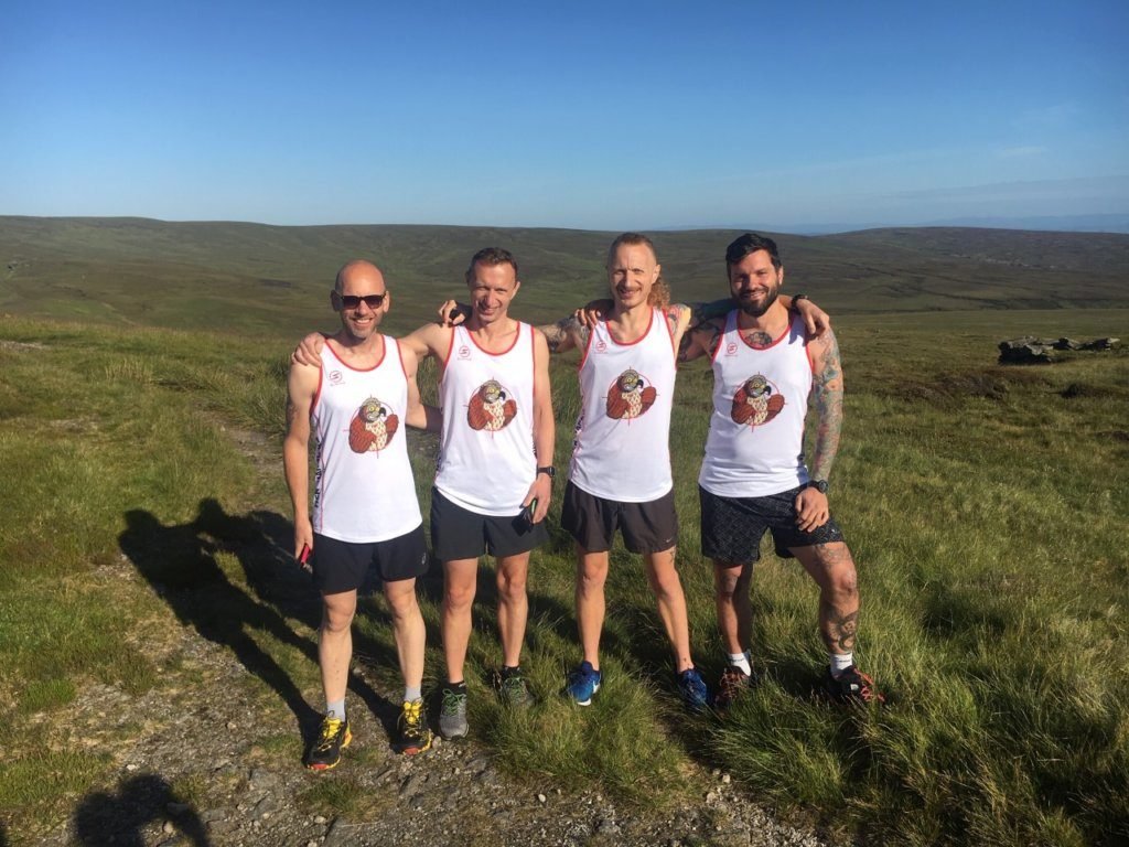 On Wednesday morning at 8am in a remote part of the Forest of Bowland Area of Outstanding Natural Beauty in Lancashire, Henry Morris (second from right above) and his brother Ed, and friends Tim and John set off on a journey. Henry’s aim was to run 200km, in four days, across the grouse moors of northern England to publicise the illegal killing of Hen Harriers and to raise money for Wild Justice. Wild Justice director Mark Avery was there to wave the gang off and wish them well.