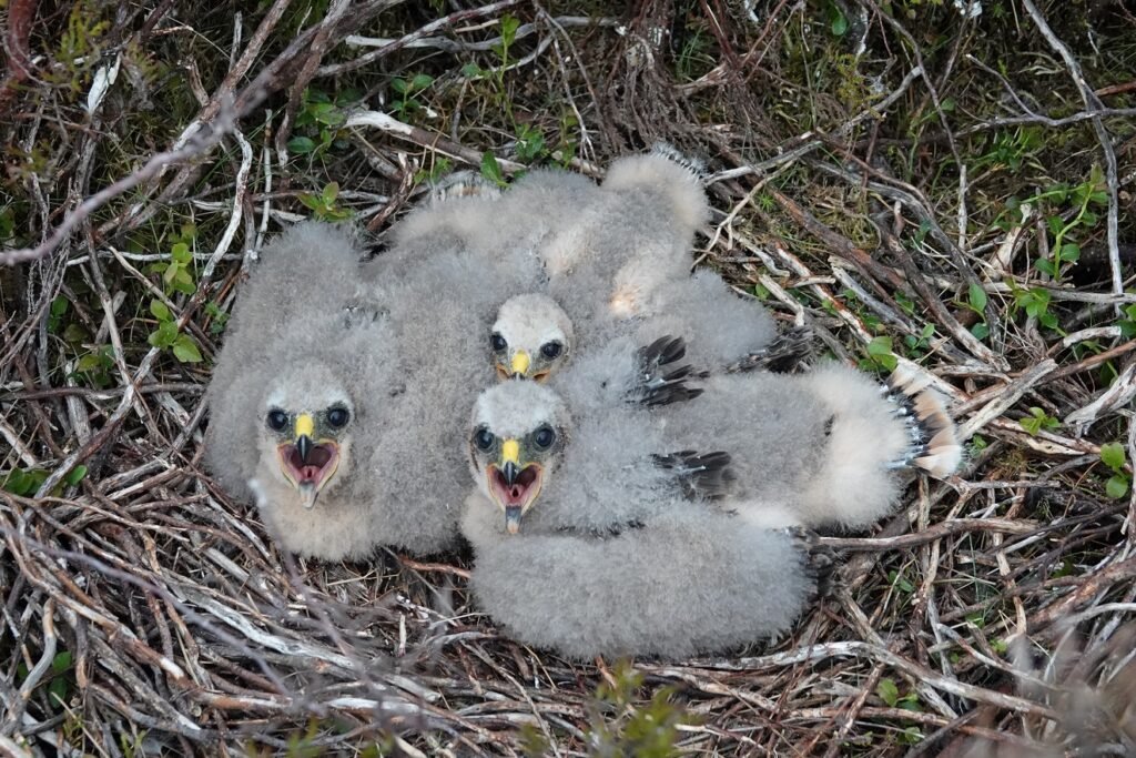 A nest of four young Hen Harrier chicks (not the same nest described below). Photo: Keith Offord