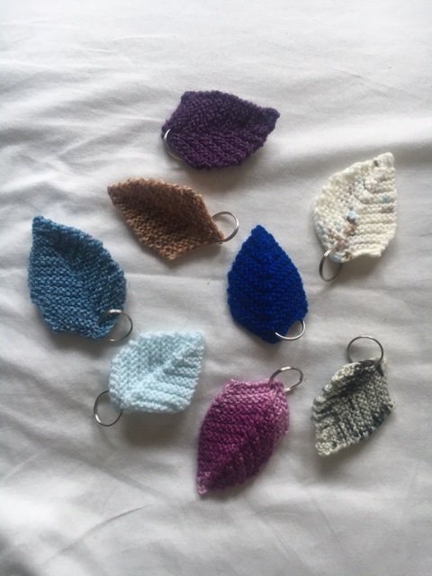 At New Year I made a resolution – to be a Craftivist, We make gifts to give to people or to display publicly trying to persuade them to change their minds by a positive act, rather than negative arguments. I decided that I would knit leaves and make them into keyrings to give to my local councillors and to the Mayor of Greater Manchester. In my letter I explain how important green spaces are – not only to wildlife but to our own physical and mental wellbeing. My request is that they work towards saving as much of the green belt as possible from the impact of new house building. I am hoping that each time they use my keyring it will remind them of that request.