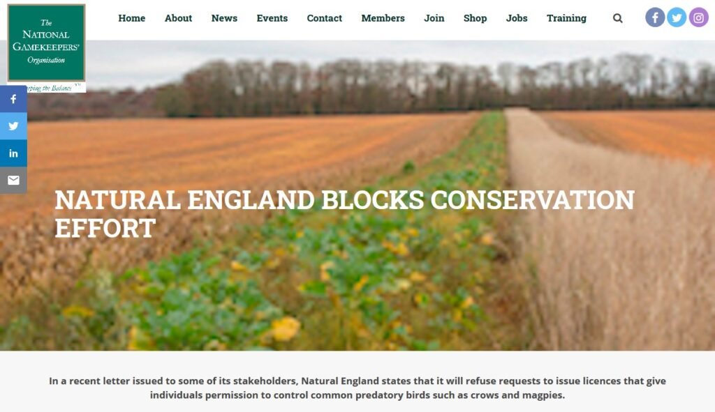 On designated wildlife sites such as SSSIs in England the general licences do not apply unless specifically authorised by Natural England. Rightly, Natural England is refusing licences for casual killing of corvids on spurious conservation grounds and wrongly gamekeepers are moaning about it. This is just Natural England beginning to do its job and stems from the changes brought about as a result of the Wild Justice legal challenges. Have a look at the Natural England letter which spells this out – click here. [By the way, the letter isn’t perfect and we’ll be pointing this out to Natural England.]