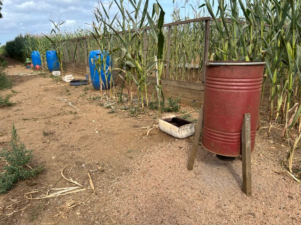 We located a second RLP release pen situated in another thin strip of maize approximately 1km from RLP release pen 1. The infrastructure was identical to RLP pen 1, as were the feeders and drink containers, which led us to believe that the same shoot operator was responsible for both RLP release pens.