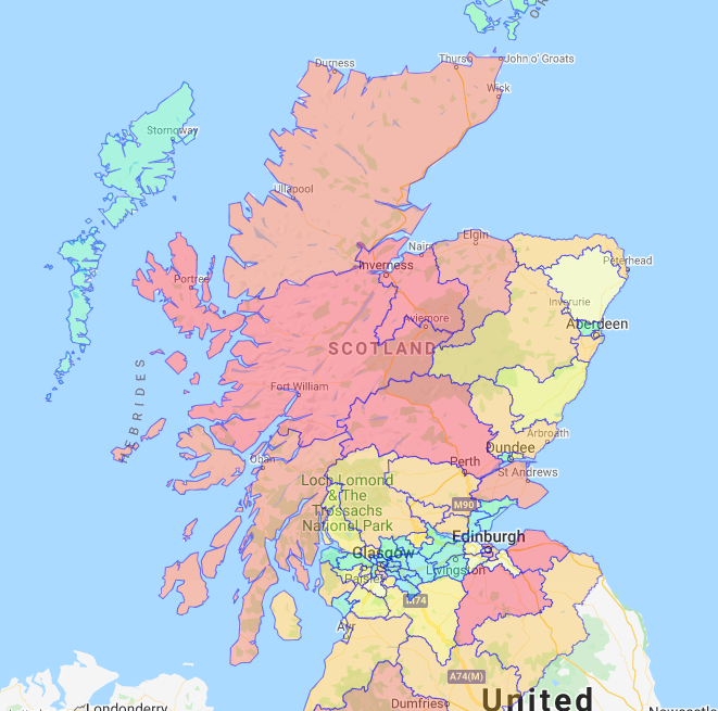 The constituencies with the least support are all in the lowland and urban central belt of Scotland: Hamilton, Larkhall and Stonehouse; Cumbernauld and Kilsyth; Glasgow Anniesland; Airdrie and Shotts; Glasgow Provan.