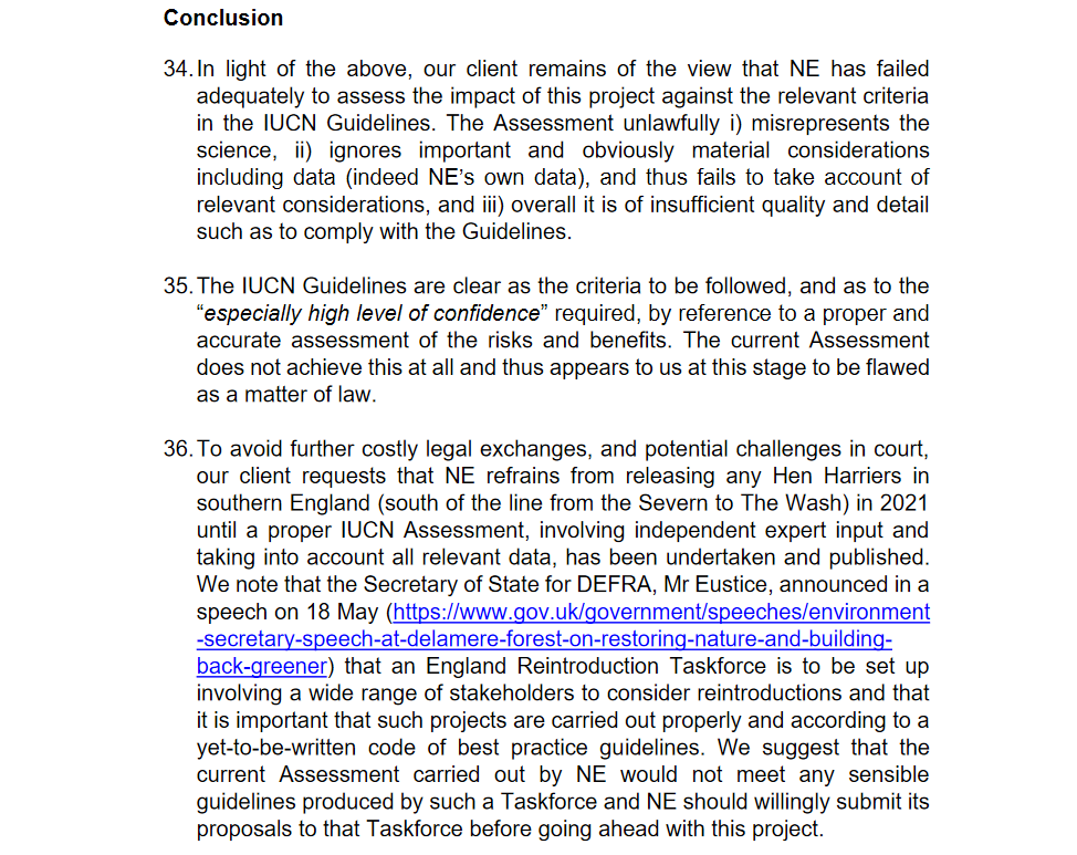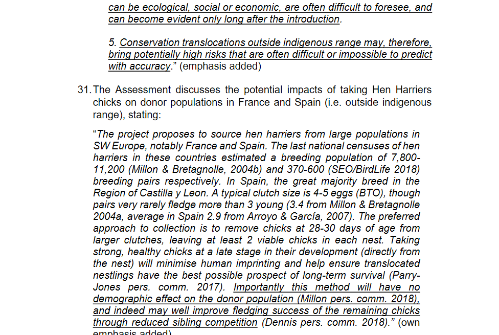 Wild Justice questions the quality of NE’s IUCN Assessment for their lowland Hen Harrier reintroduction project