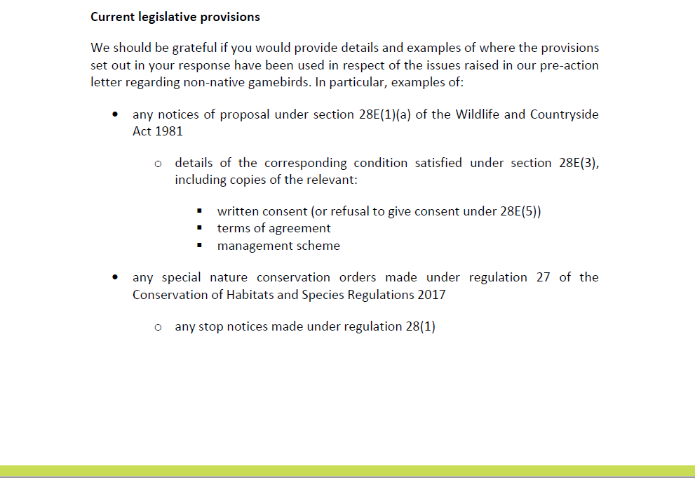 Wild Justice response to Defra on gamebirds