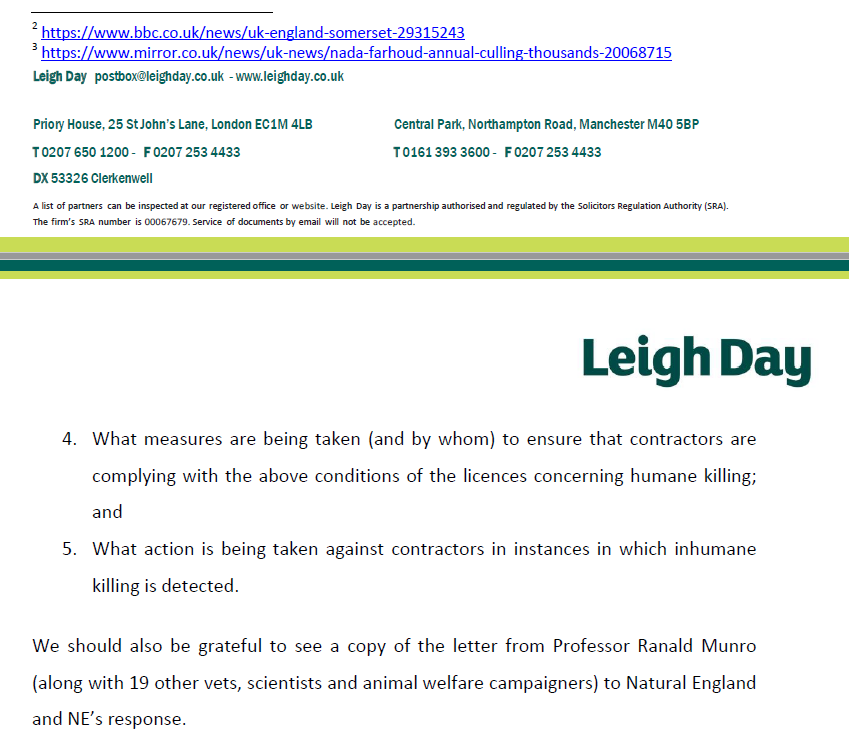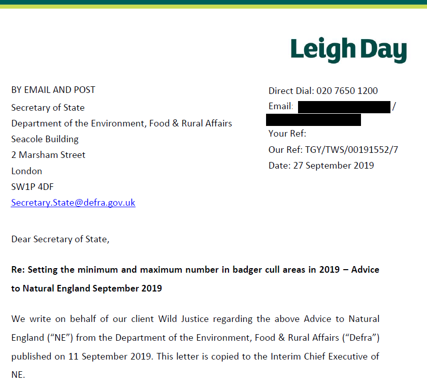 At this stage we have not launched a crowdfunder and we are not asking for financial support (although sending a letter of the sort below clearly entails both work from Wild Justice and our legal team and some expense) although if we take this matter further we will ask for your support.