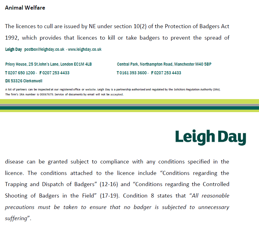 We have received many requests, pleas and some communications akin to demands, that we take legal action against Defra over its outrageous, cruel and unscientific Badger cull programme and against Natural England over its licensing of these culls.